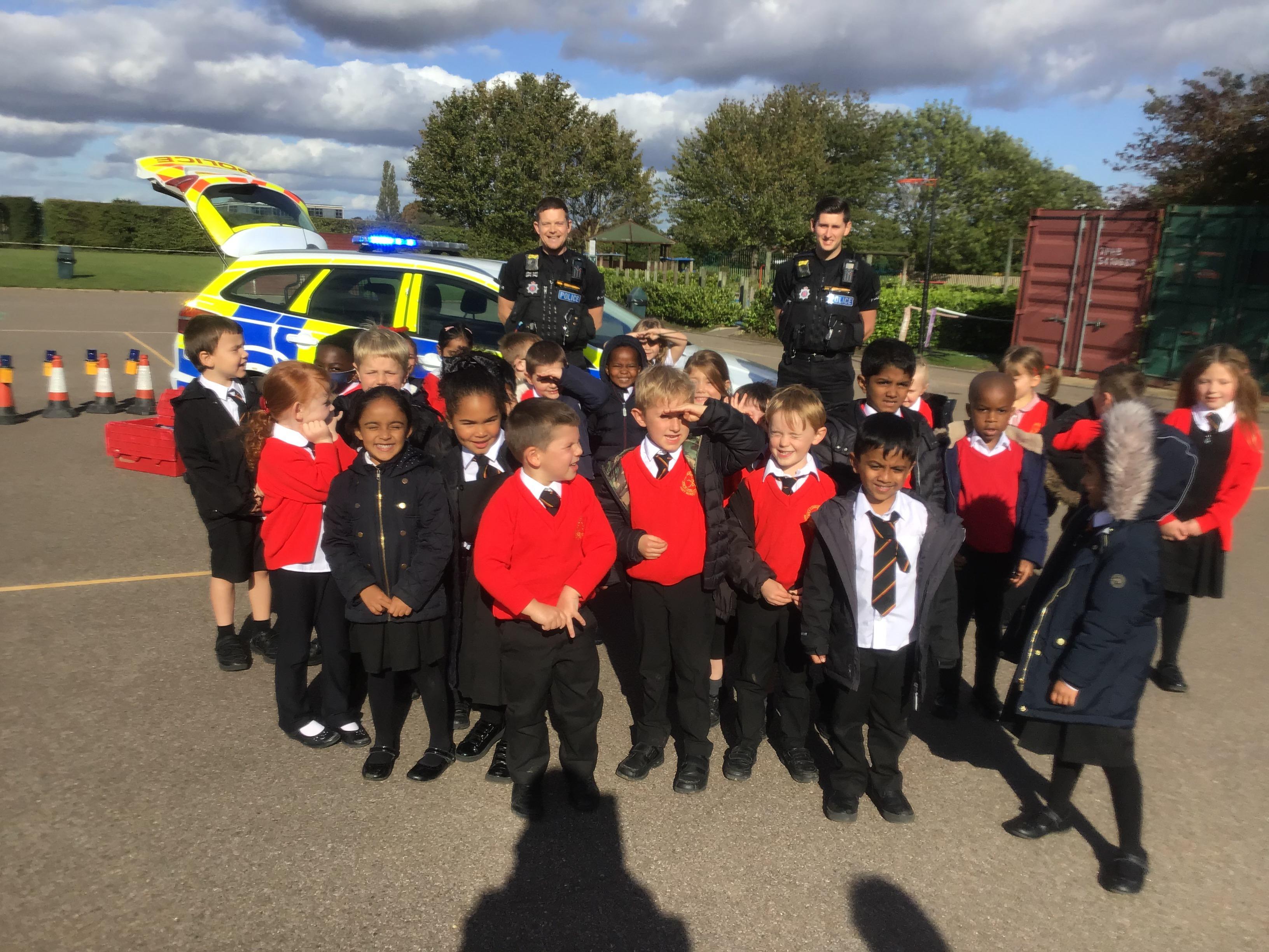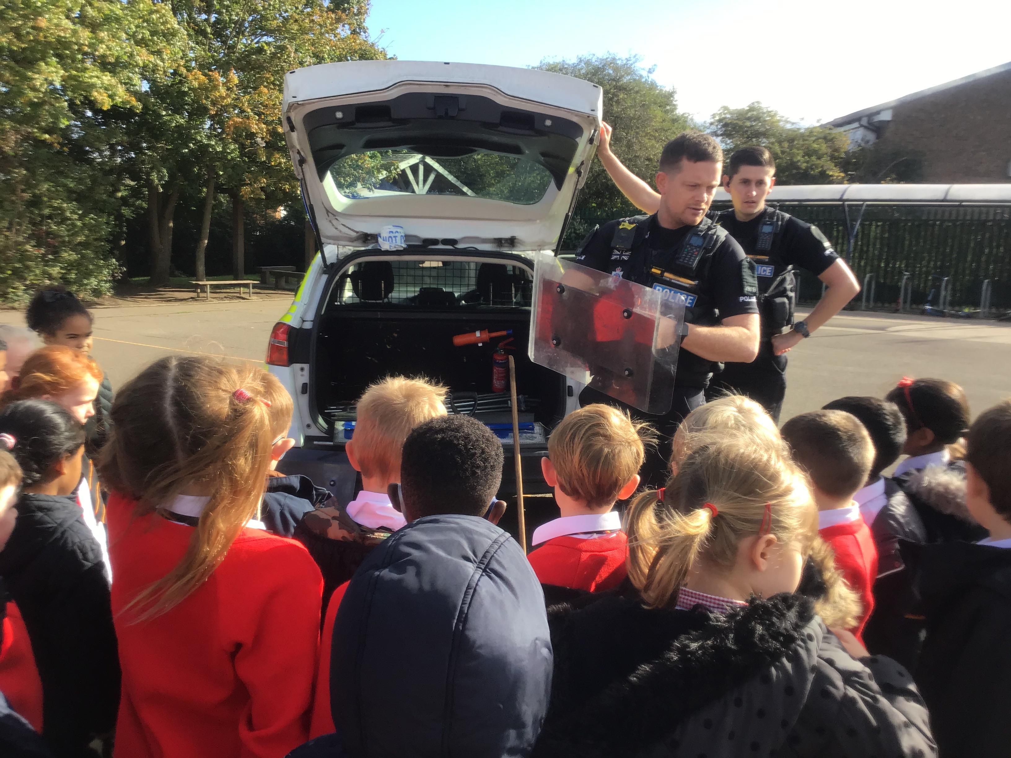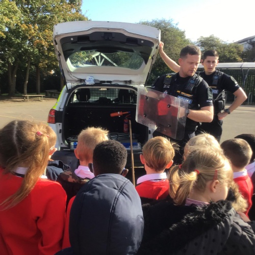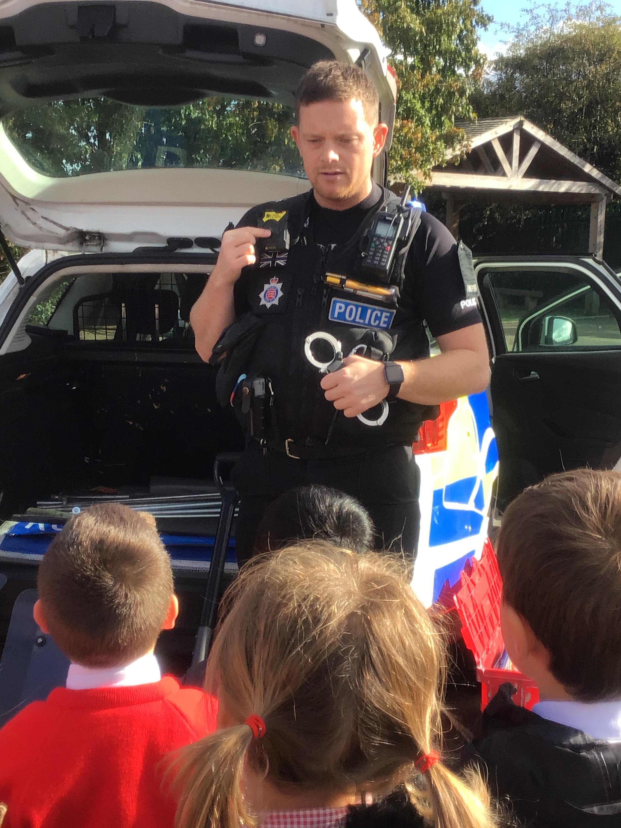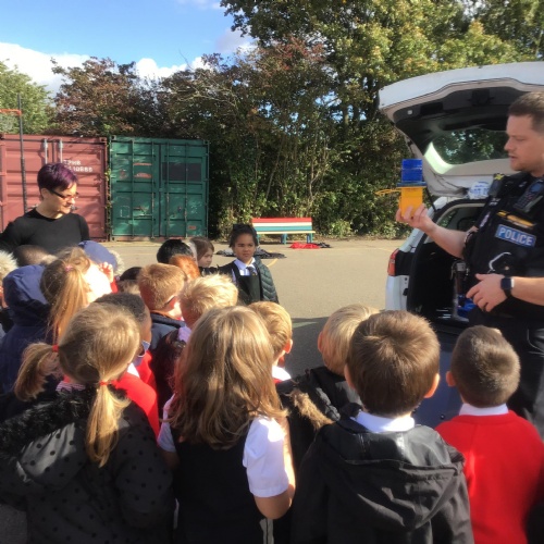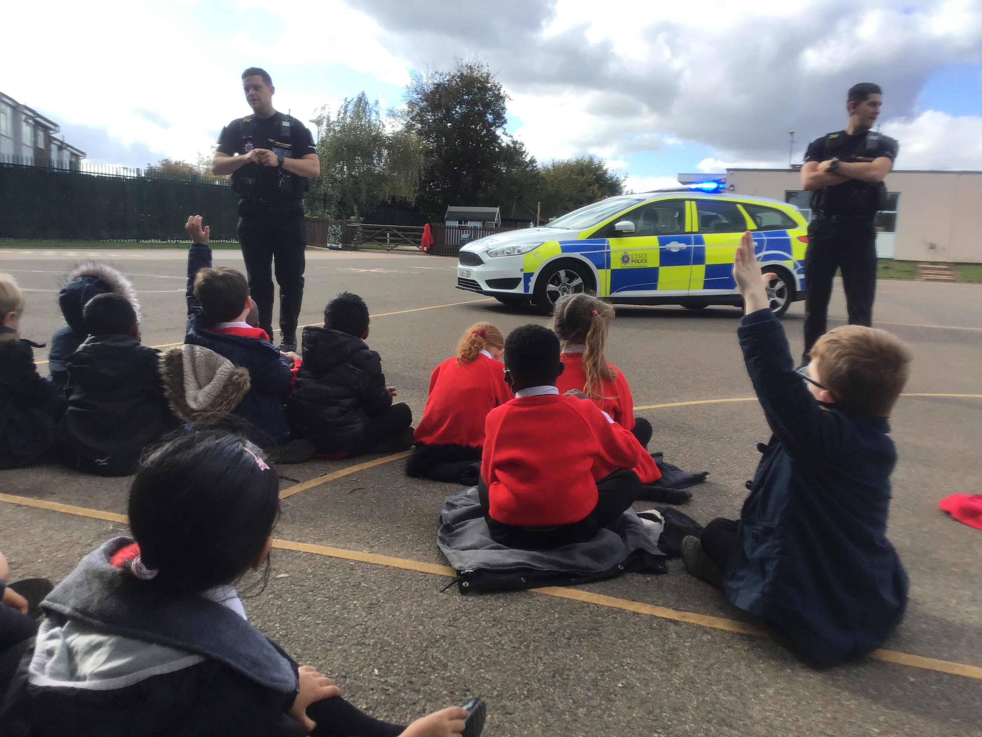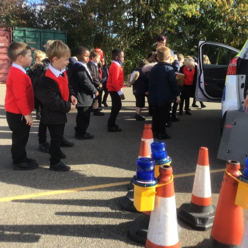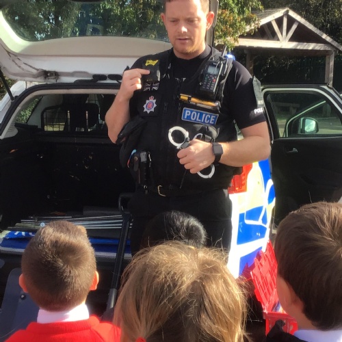 Because we are learning about Superheroes, we had a visit from our local superheroes - the police! Two officers, PC James and PC Peter, from the Chelmsford and Maldon Community Policing Team came in and told us all about what sort of things they do to keep us safe, how we can keep ourselves safe and they answered all of our questions. We learnt about the equipment they use, we had a look inside the police car, saw the flashing lights on top and even heard the siren! It was an AMAZING afternoon and we all learnt a lot!