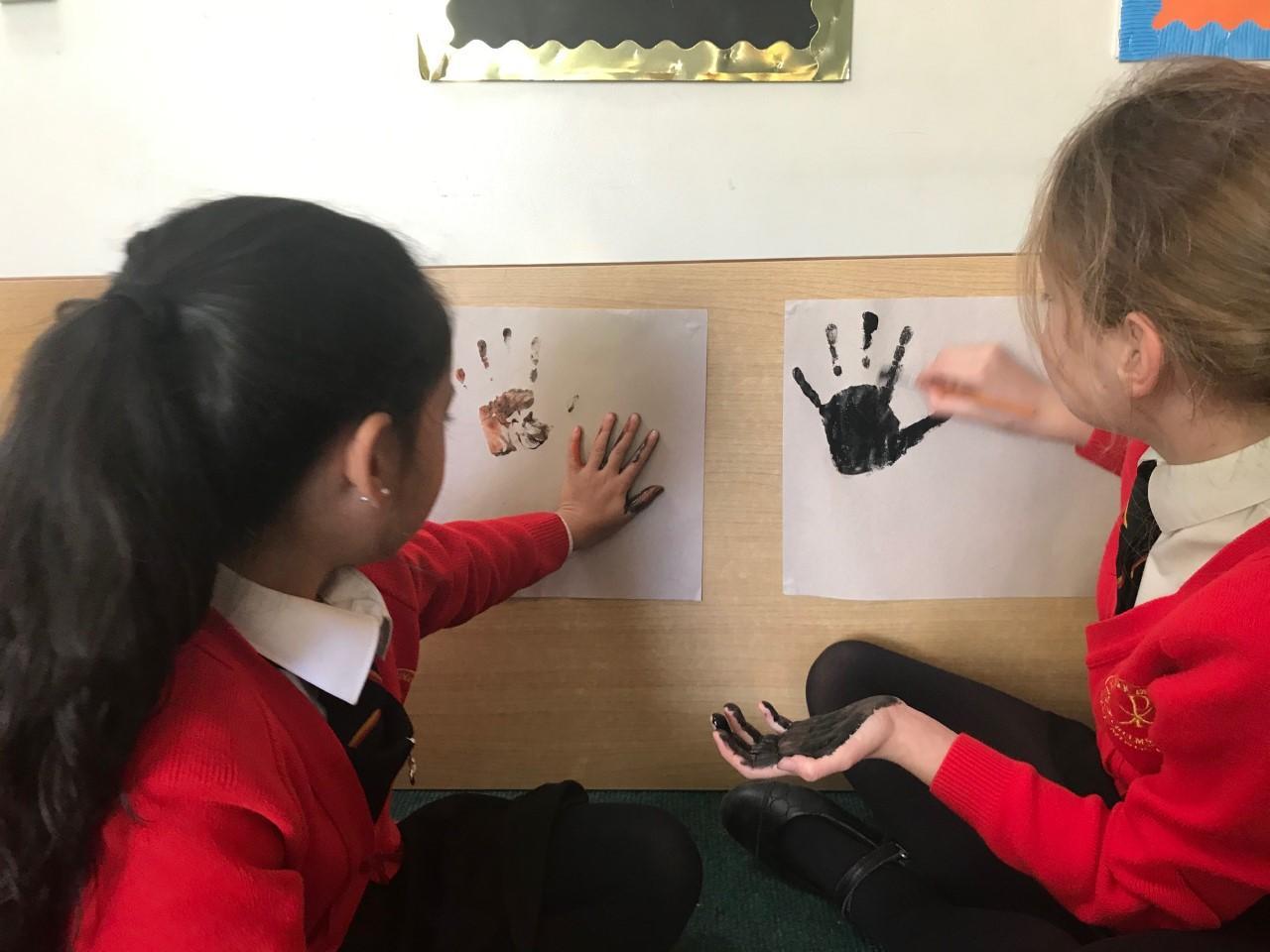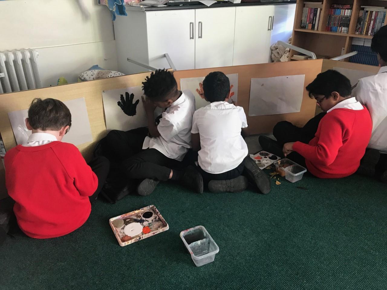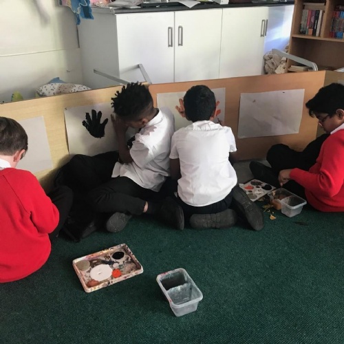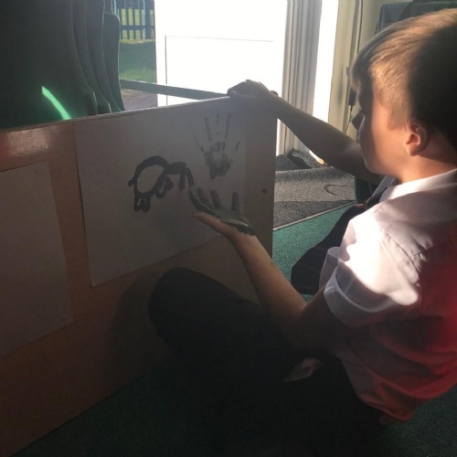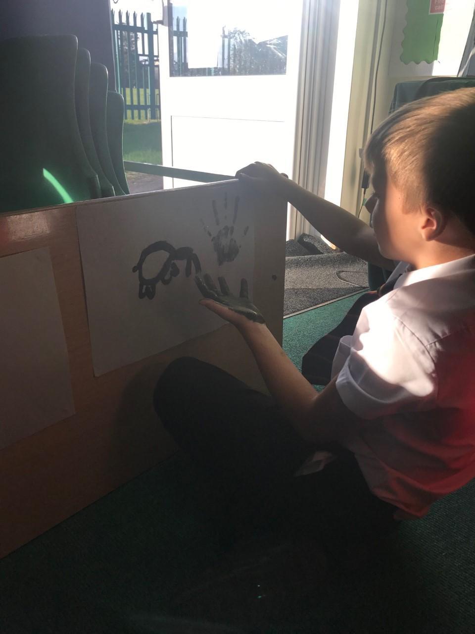 SO.... we made a camp fire, built shelter and hunted animals in the Outdoor area, researched how to make weapons, designed and sewed Stone Age tunics, created Cave art on the table walls and created caves in the classroom. We've had so much fun! We then invited the whole school (one class at a time, obviously!) into our classroom, which had been transformed into a huge cave! Year 5 taught everyone, from EYFS all the way up to Year 6, all about what they had learnt so far. To top it all off, we gave them torches and instructions to carefully venture through the long, dark cave back into 2019!