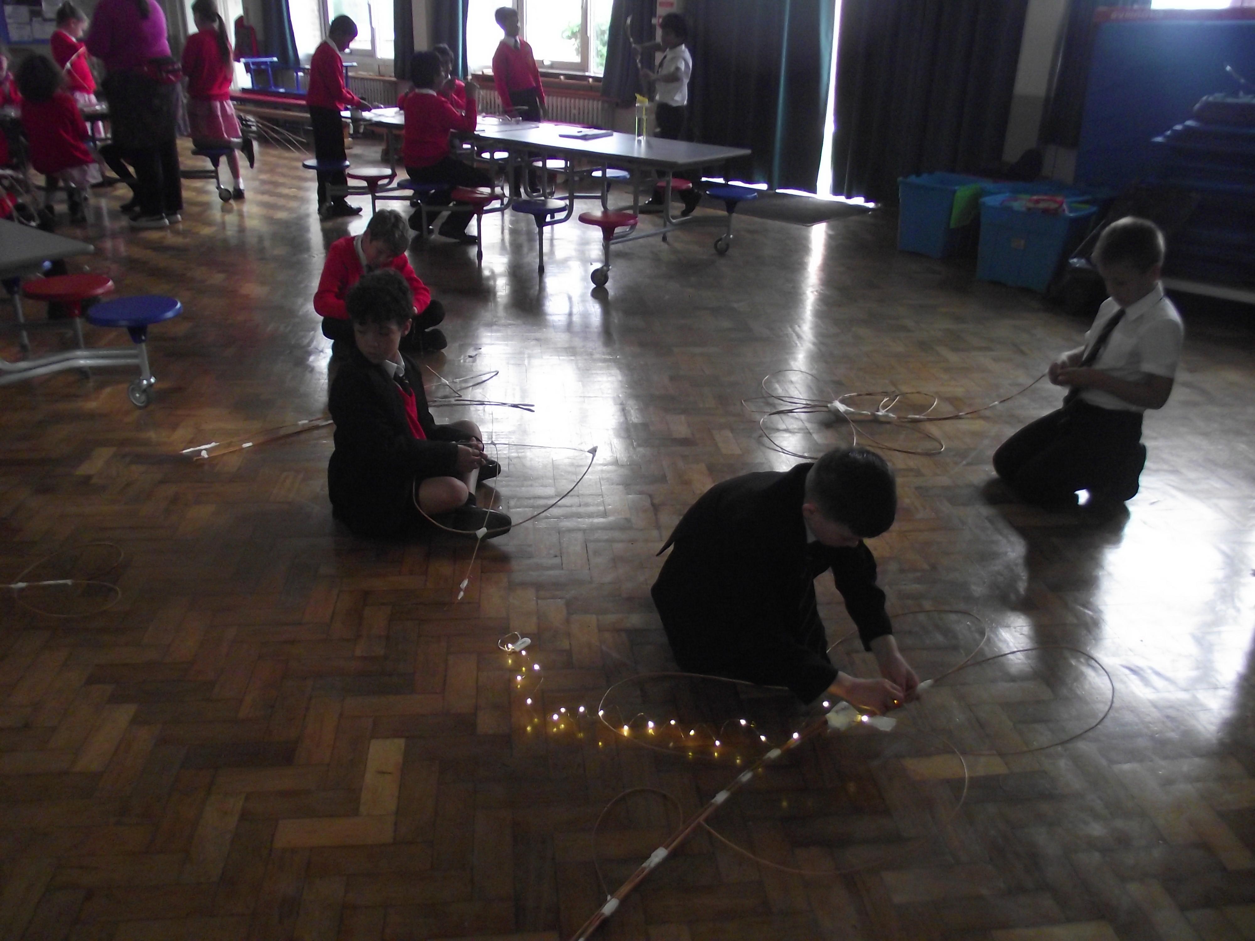Year 5 were lucky enough to be selected for the 'light parade' workshop, which involved designing and creating effective lanterns for the Chelmsford Light Parade (October 2019). Armed with scissors, tape, willow, LED lights and extremely nimble fingers, everyone was able to construct a beautiful light sculpture which lit up the school hall. Wonderful work, Year 5!